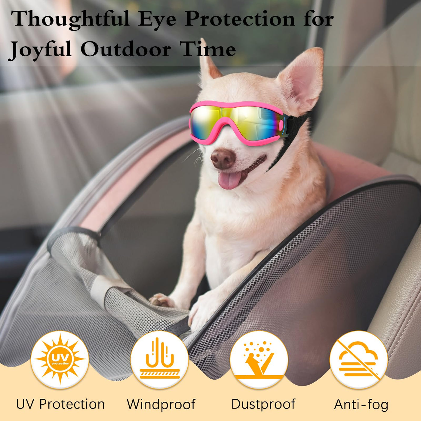 Lewondr Dog Goggles Small To Medium Breed, Dog Sunglasses With Adjustable Straps & Air Vents, Uv/Wind/Dust/Fog/Snow Proof Dog Ey