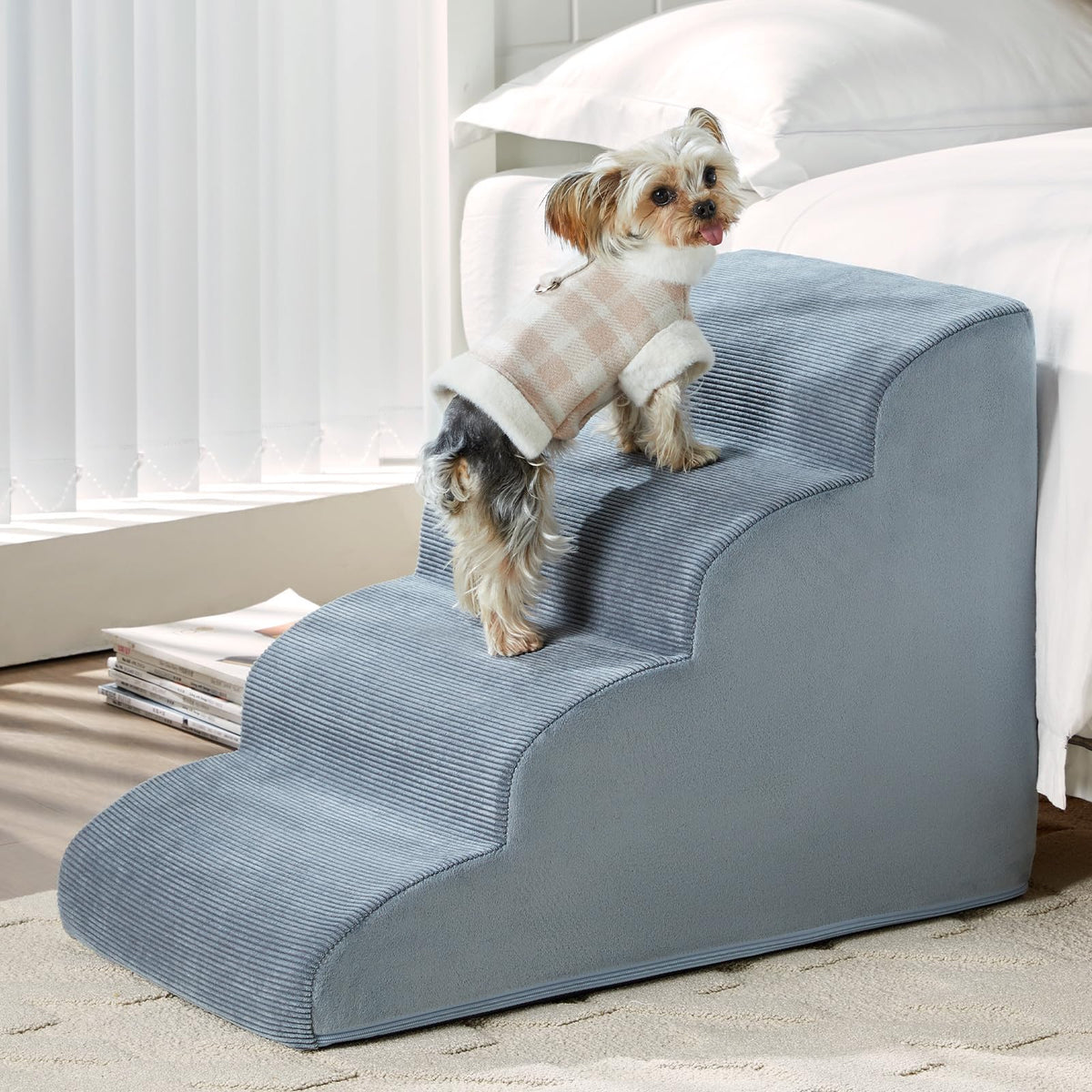 Lextro Dog Steps For Bed, 4-Steps Dog Ramp For Bed, Pet Stairs With Highly Supportive Foam And Non-Slip Bottom, Dog Stairs For L