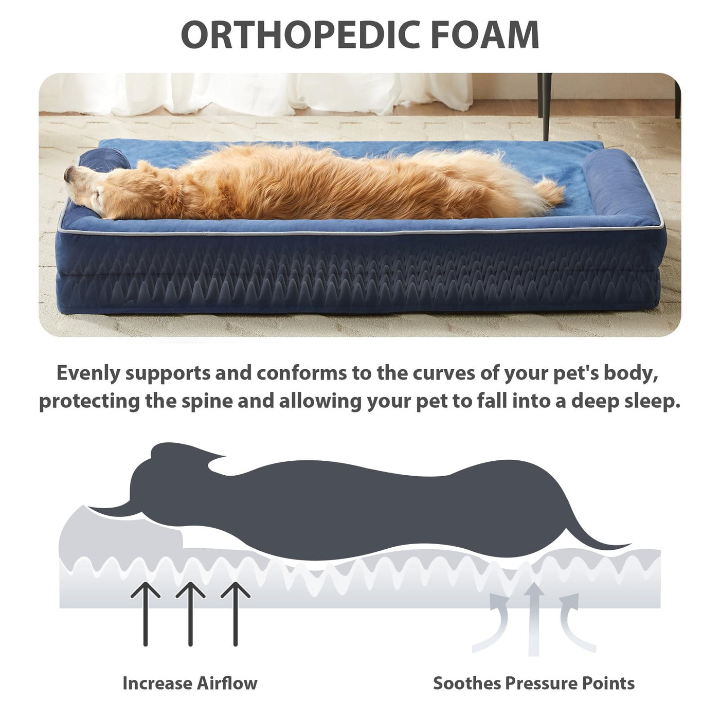 Lextro Orthopedic Dog Beds Large Sized Dog, Waterproof Bed With Sides, Washable Couch Dog Bed With Removable Pillow Cover And An