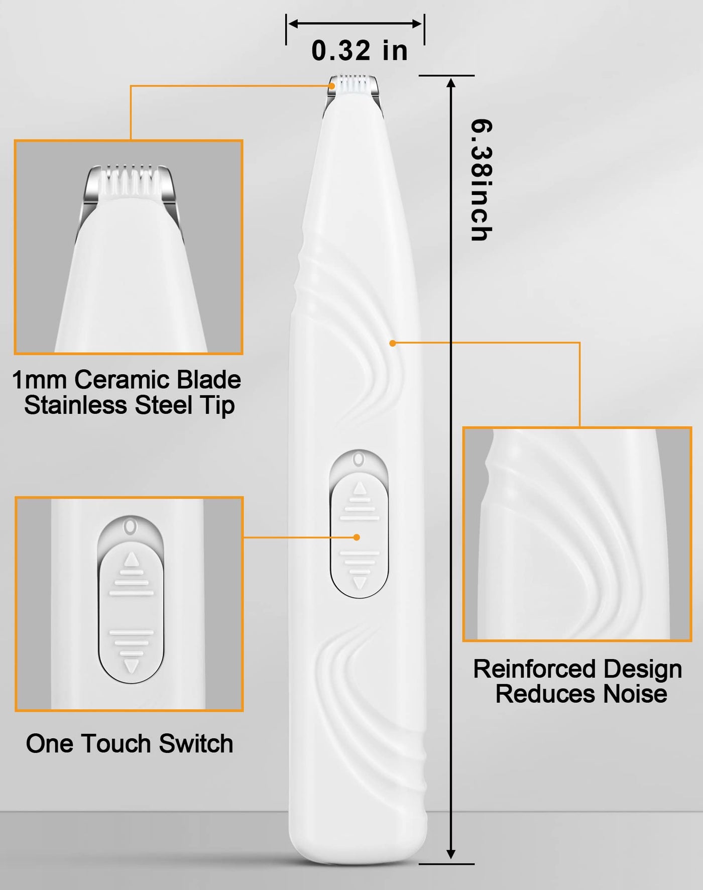 Easy Operation Dog Paw Trimmer: If you are a beginner then this will be perfect for you Easy to operate push the button to start trimming very easy to trim around small areas example dog and cats hair around the face rump eye paw Quiet Dog Paw Trimmer: Dog clippers for grooming small dogs Quiet and Low Vibration Design the pet clipperss noise about 50db comfortable experience during the grooming process not scare small dog Sharp Dog Paw Trimmer: Dog clippers for grooming small dogs Upgraded stainless steel metal blades provide excellent cutting performance fine high-precision blades to better trim the hair on the pet body small area Use AAA*2 Batteries (Not Included): Dog clippers for grooming Safe and convenient Ideal for pet grooming store or home using(Note) Be sure to install a new battery to ensure sufficient power What You get: Dog clippers for grooming one cleaning brush one oil bottle cute packaging box great for gifts too
