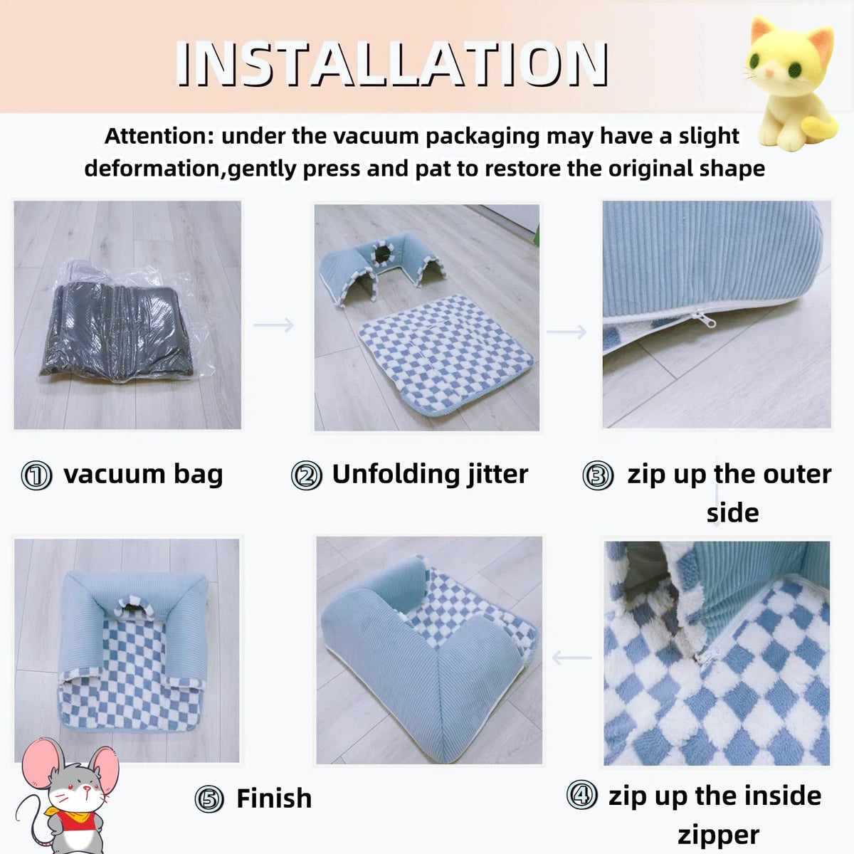 High Quality Material: The Tunnel Is Made Of 25D High-Density Cotton, Durable And Not Easy To Deform, Even If Collapsed 2 Seconds To Rebound. Sleeping Bed Double Layer Fabric Is Soft And Comfortable. Another Layer Of Non-Slip Waterproof Fabric At The Bottom To Keep It Dry.Upgraded Dimensions: Mat 22.05 X 18.9 Inches, Tunnel 18.9 X 13.39 Inches, Tunnel Opening 5.91 X 5.91 Inches. Dimensions Are Optimized To Provide More Room For Movement.Play And Sleep In One: The Extra-Long Tunnel Is Suitable For Multiple Pets To Move And Play, And The Enlarged Sleeping Pad Can Accommodate Multiple Dutch Pig Resting Together, Promoting The Establishment And Maintenance Of Group Relationships And Enhancing Their Sense Of Belonging And Security.Three Holes Design: The Tunnel Is Configured With Three Holes To Stimulate Your Pet'S Desire To Explore, Increase The Fun Of Playing, And Promote Healthy Growth With More Exercise. Suitable For Dwarf Rabbits, Chinchillas, Hamsters, Hedgehogs, Bearded Dragons And Rats And Other Small Pets.Easy To Install And Clean: The Tunnel Is Linked To The Mat By A Zipper For Easy Removal And Cleaning, Machine Washable To Maintain A Clean And Warm Living Environment.