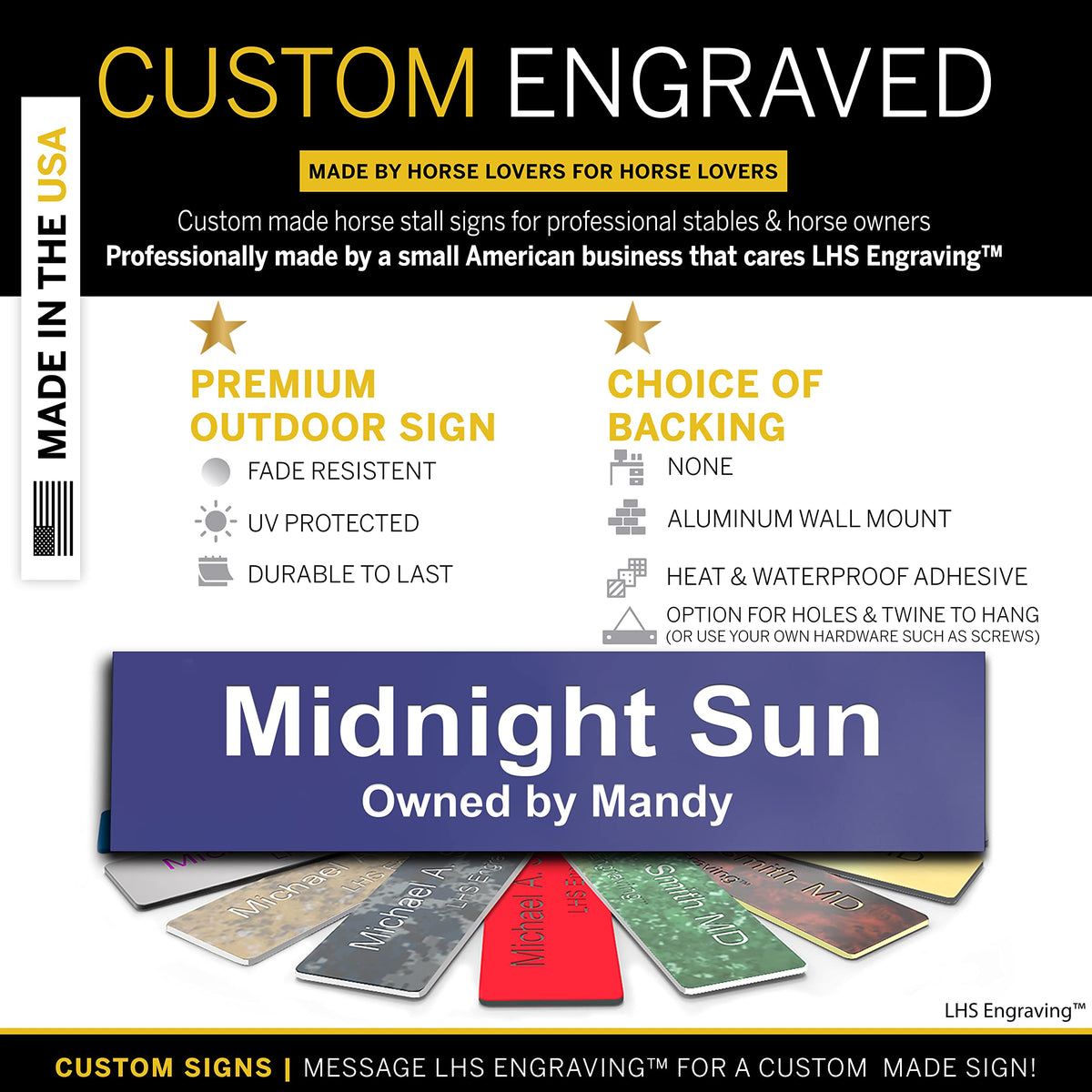 Lhs | Horse Stall Name Plate, 2X10 Personalized Stall Signs, Uv Protected, All Weather Adhesive, Hanging, Mounting Or Other, Pur