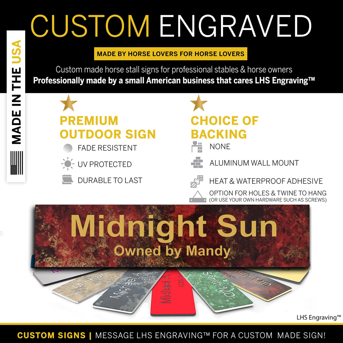 Lhs | Horse Stall Name Plate, 2X10 Personalized Stall Signs, Uv Protected, All Weather Adhesive, Hanging, Mounting Or Other, Rus