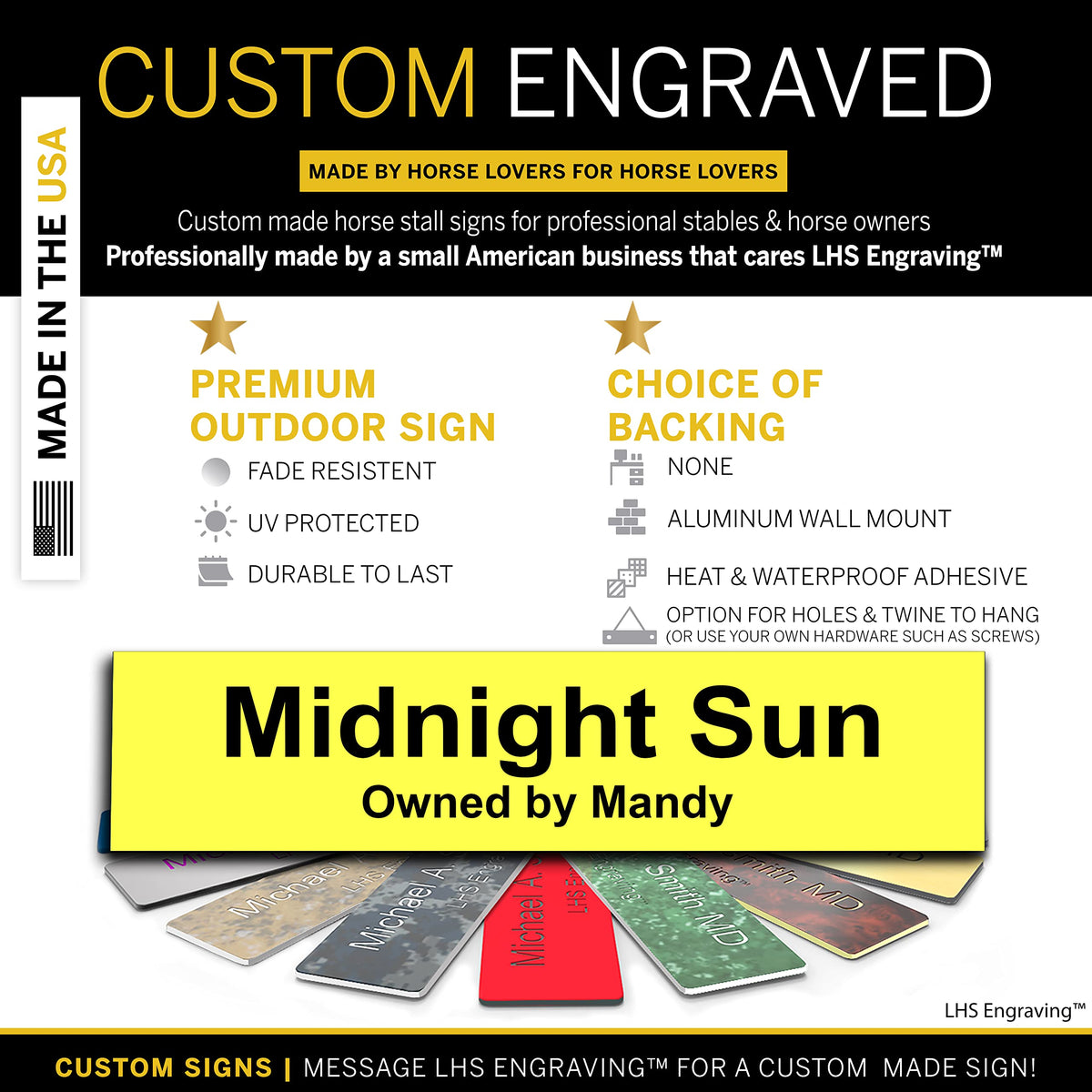 Lhs | Horse Stall Name Plate, 2X10 Personalized Stall Signs, Uv Protected, All Weather Adhesive, Hanging, Mounting Or Other, Yel