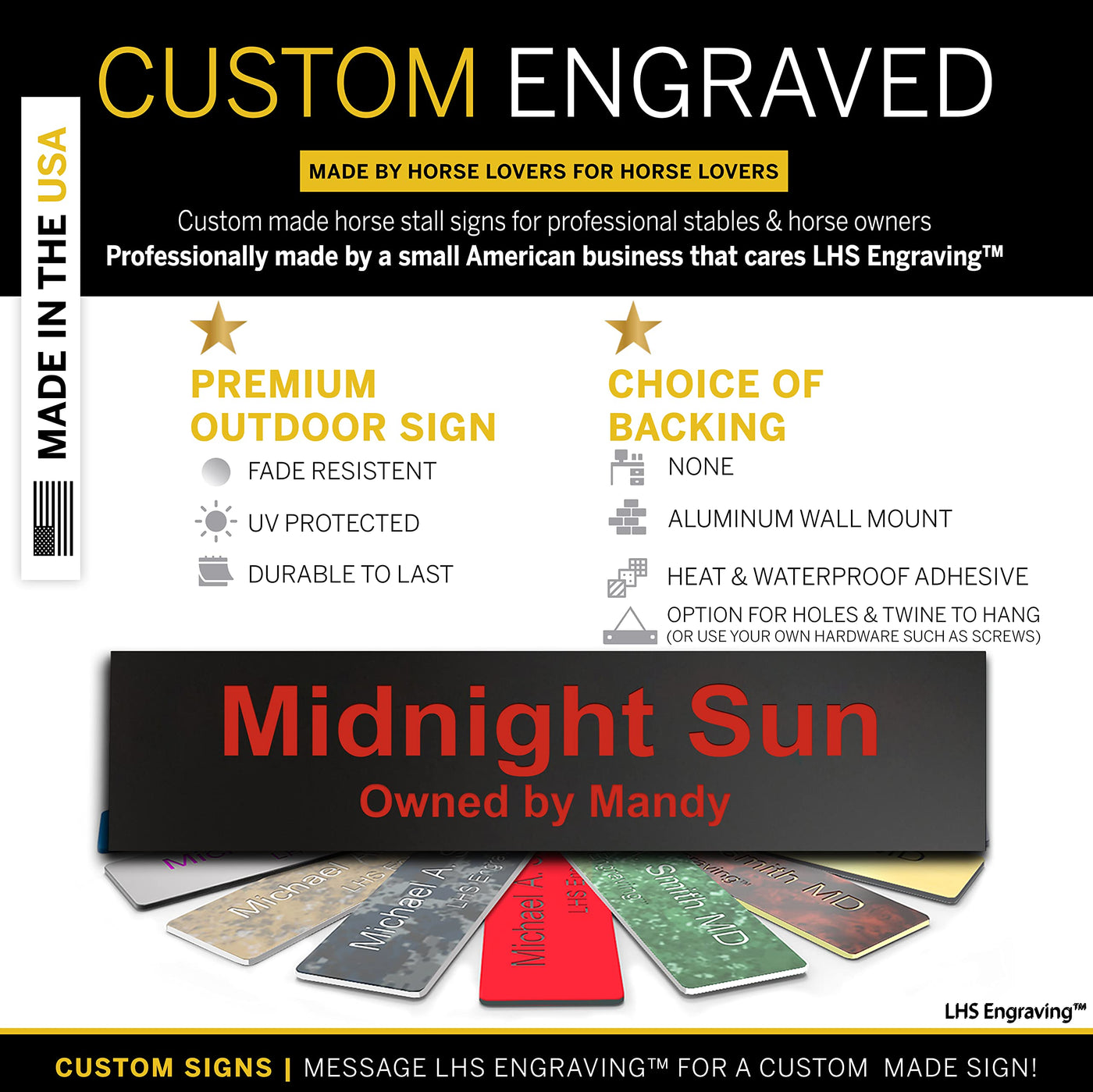 Lhs | Horse Stall Name Plate, 2X12 Personalized Stall Signs, Uv Protected, All Weather Adhesive, Hanging, Mounting Or Other, Pla