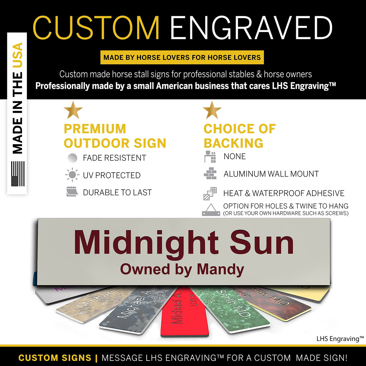 Lhs | Horse Stall Name Plate, 2X8 Personalized Stall Signs, Uv Protected, All Weather Adhesive, Hanging, Mounting Or Other, Gray