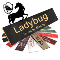Lhs | Personalized Horse Stall Name Plates, 2X10 Horse Stall Signs With Adhesive, All Weather Uv Protected, Black Plastic Gold L