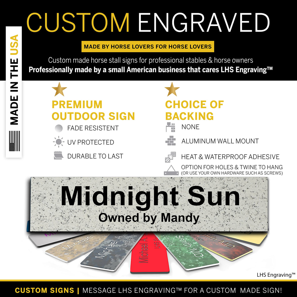 Lhs | Personalized Horse Stall Name Plates, 2X6 Horse Stall Signs With Adhesive, All Weather Uv Protected, Stone Granite Pattern