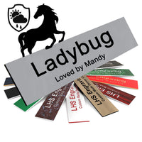 Barns, Stables And Trailers Are All Needed For Your Horse And Or Your Boarding Facility And A Horse Name Plate Is No Different. You Simply Just Need A Personalized Stall Plaque That Will Work And Looks Professional. Not Only For Yourself, Employees, But To Show Off Your Barn To Your Clients. But Also For These Animals We All Love.This Horse Stall Sign Is Made Specifically For Your Stable. You Could Use Office Name Plate Of Course. But Not All Are The Same. You Need A Ranch Sign Meant To Be Used Outside That Won'T Degrade Due To Temperature, Moisture, And Uv Rays And Will Hold Up Nice In Outdoors. A Properly Engraved Name Plate Is Important As You Need It To Be Engraved With The Pedigree, And/Or The Horses Name, (In Larger Characters) And The Horse Owner (In Smaller Characters). And Of Course You Need One That Looks Good So You Can Show It Off To All Your Neiiiiighbours (Sorry, Couldn'T Help It) These Work Great To Also Be Used With A Horse Trailer, Hang It Up At A Horse Show, Or Even To Customize A Utility Box. Either Way, This Is A Dedicated Indoor/Outdoor Horse Stall Name Plate That Will Look Just As Beautiful In Your Barn As Your Horse Does.