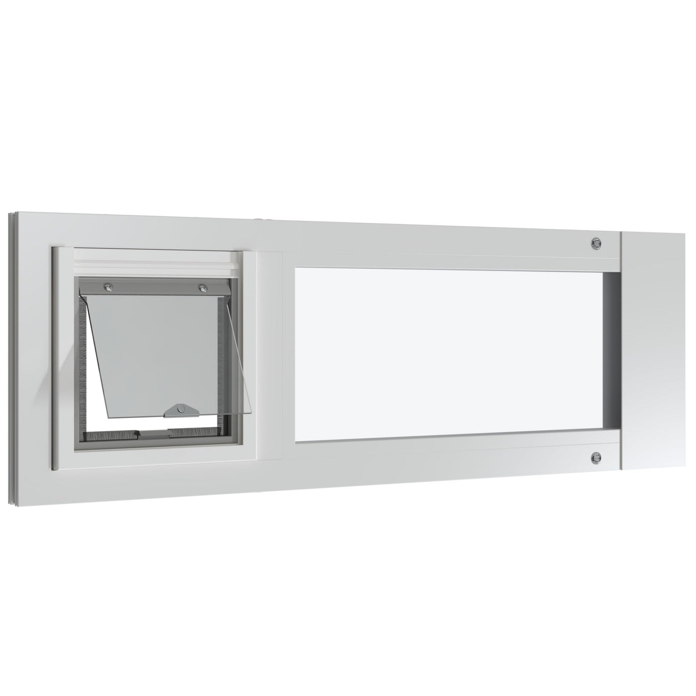 The Liberty Pet Door for Sash Windows is a premium solution meticulously crafted to meet the discerning needs of pet owners seeking both quality and style. Engineered to seamlessly integrate into sash windows ranging from 22 to 44 in width, this pet door offers versatility and convenience for homes of various sizes and styles. Crafted with a heavy extruded aluminum or vinyl frame, this pet door promises durability and longevity, available in a range of colors to match any home d cor. The inclusion of clear safety glass enhances insulation, ensuring energy efficiency and comfort throughout the year, even in severe 4-season climates. Installation is a breeze with the Liberty Pet Door, featuring a simple, semi-permanent process that requires no permanent alterations, making it an ideal choice for renters and those seeking a non-invasive solution. The clear vinyl flap, equipped with magnetic sealing and weatherstripping, offers pets a clear view while remaining sealed against the elements. Each Liberty Pet Door includes a locking cover made from molded ABS plastic, providing added security and peace of mind for pet owners. Made in the USA, this pet door is a testament to quality craftsmanship, enhancing both the functionality and aesthetics of your home. Experience the perfect blend of innovation, durability, and style with the Liberty Pet Door for White Sash Windows, designed to cater to the comfort and freedom of your beloved pets while elevating your living space.