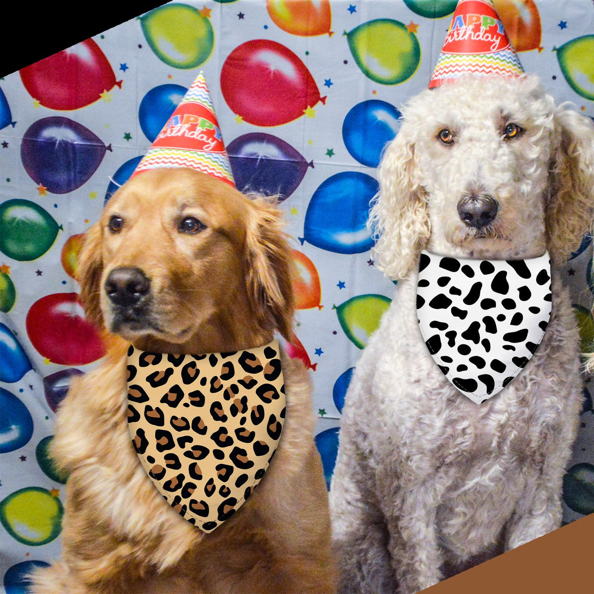 Liboom - Cow Spots And Leopard Prints Dog Bandana Washable Pets Scarf Triangle Adjustable Handkerchief, Double Sided Printing, W