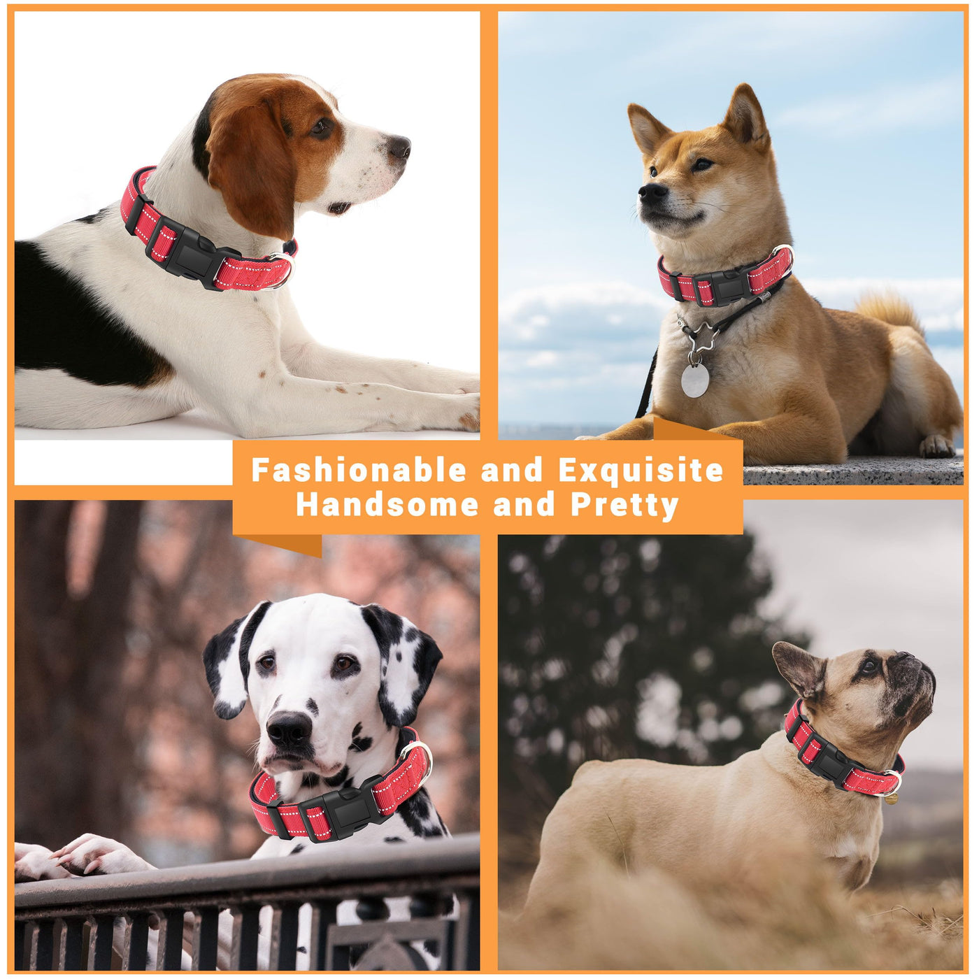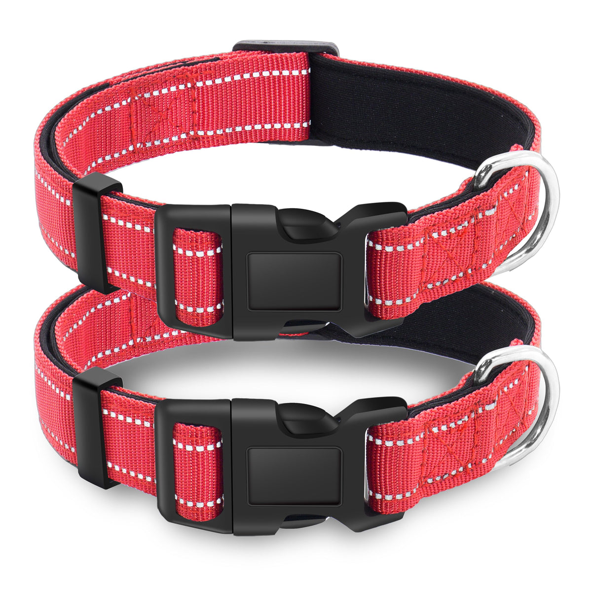 Lievuiken 2 Pack Reflective Dog Collar With Safety Locking Buckle, Adjustable Soft Breathable Comfortable Nylon Pet Collar For S