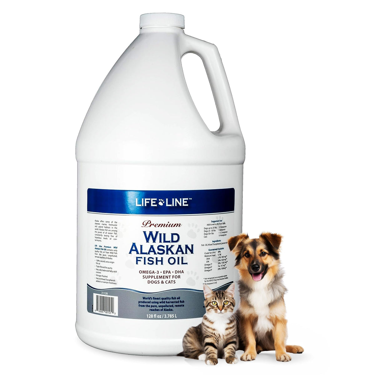 From the premier producer of wild Alaskan salmon oil our fish oil is pure, natural and gently filtered within hours of harvest to retain all the goodness that nature intended. Flushed with nitrogen throughout the production process. Our fish oil is not denatured by over-cooking or molecular distillation, processes used to purify and deodorize inferior oils, and yet still tests free of contaminants while providing all the nutrients found in nature. Excellent for improved skin and coat, this source of Omega-3 provides many more benefits than just alleviating dry, flakey skin. DHA is the important Omega-3 that is critical for brain, eye and heart health, has anti-inflammatory properties and is also linked to improved learning in puppies. Made and packaged in the USA from wild Pollock harvested in Alaska, USA. Pollock is one of the most popular fish in the country although most people have never heard of it. The next time you have fish sticks for dinner look at the ingredient. Pollock is also a common ingredient used to create imitation crab meat. Each 4650 mg teaspoon provides approximately 929 mg of total omega-3 fatty acids, including 485 mg of EPA and 260 mg of DHA. Now preserved with certified non-GMO natural mixed tocopherols! Convenient refill size jug. The highest quality wild salmon oil, certified organic kelp and treats since 2002.