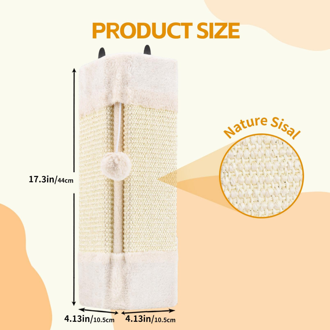 Liflix 2-Pack Wall Corner Cat Scratcher For Indoor Cats - Wall Mounted Sisal Scratching Pad With Hanging Ball - Vertical Corner