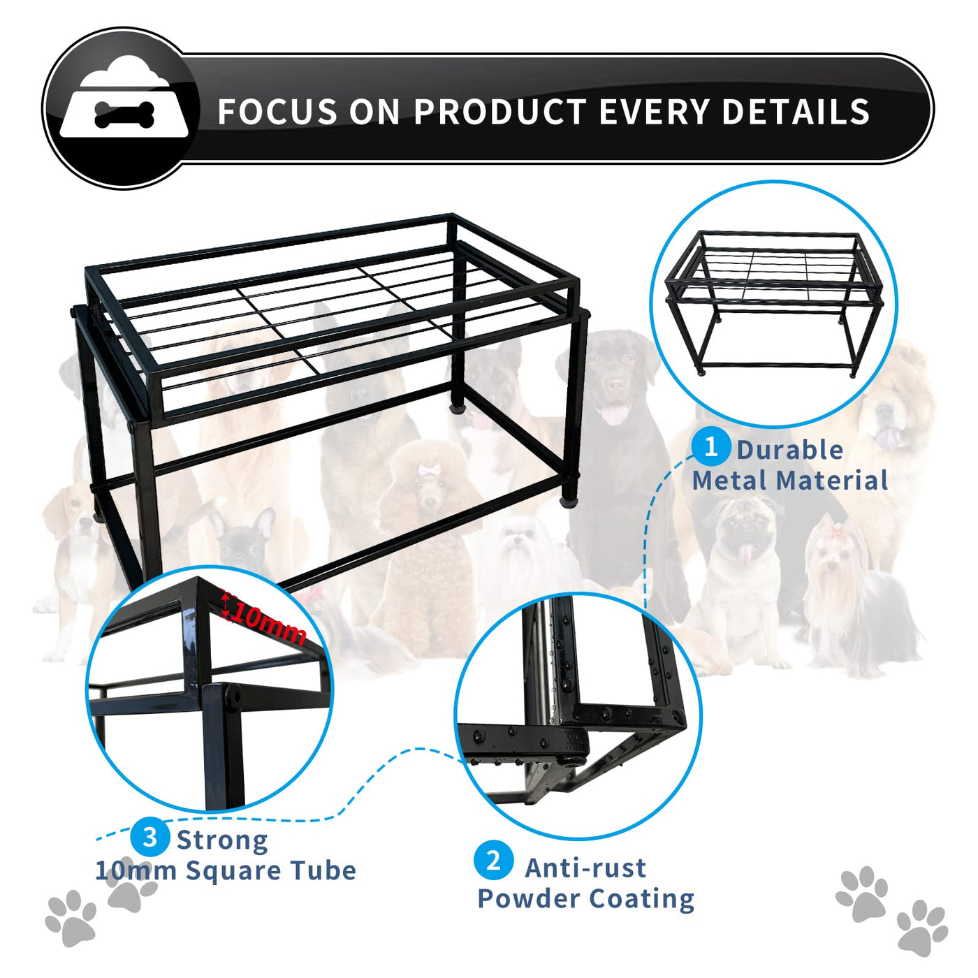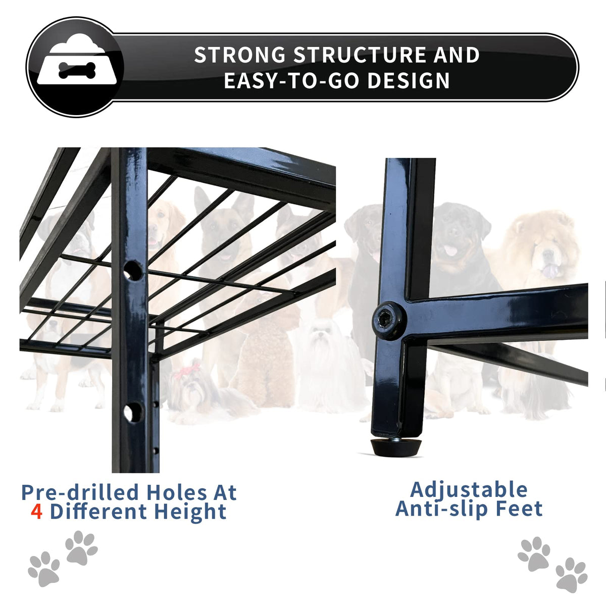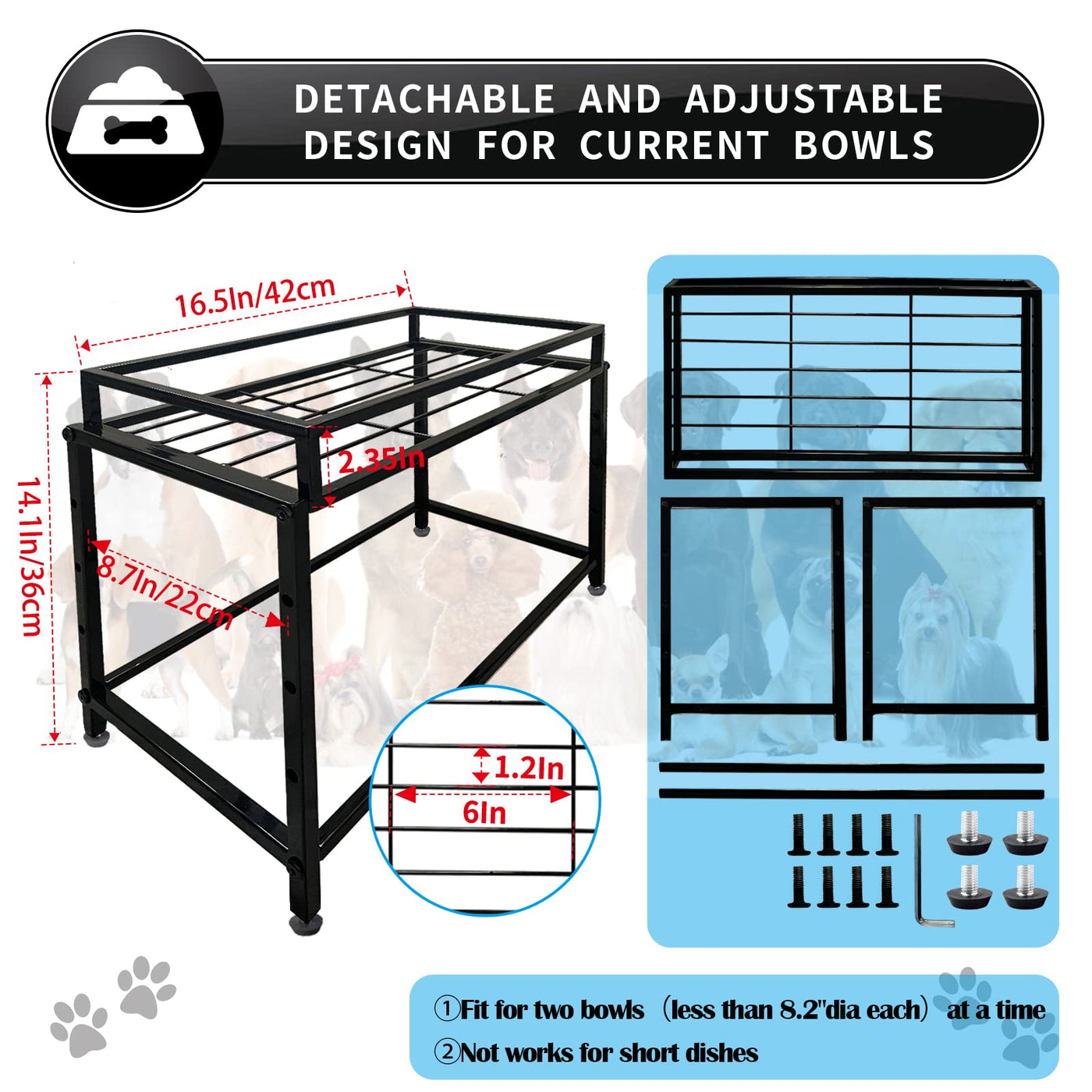 Lifted Dog/Cat Bowl Stand, Raised Dog Bowl Holder for Existing Bowls, 4 Adjustable Heights for Puppy, Small, Medium and Large Si