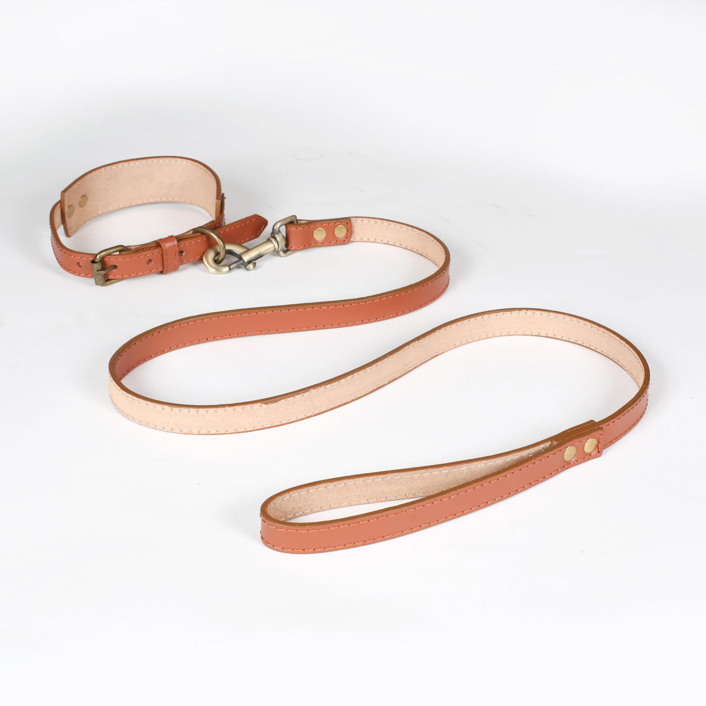 Tan Leather Dog Collar And Leash Set - Soft, Comfortable, Durable Adjustable Collar And Leash Combo, Premium Dog Walking Set - 18 Inch Collar, 50 Inch Leash, Tan Brown