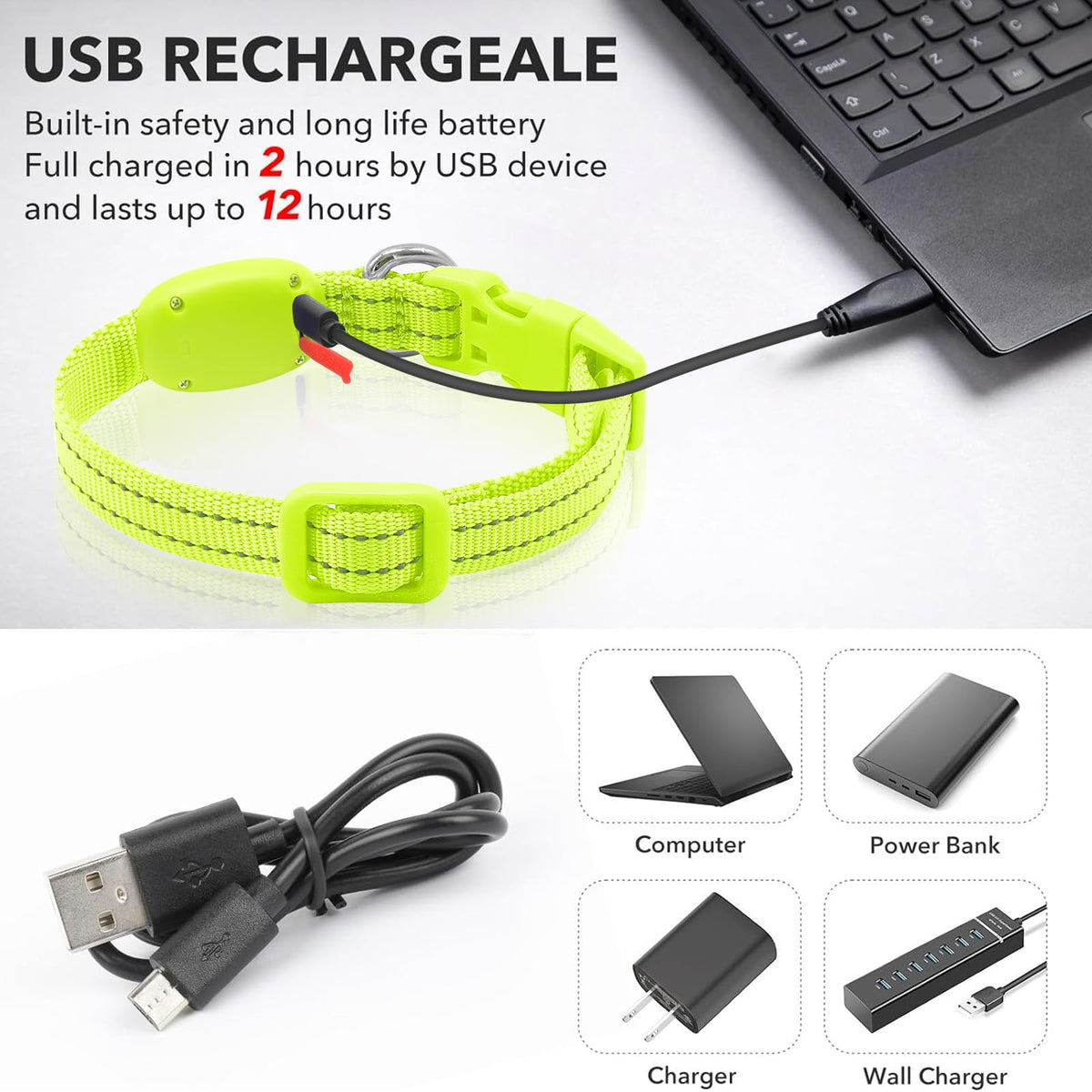 We Have Noticed Since The Dogs Have Been Wearing Led Dog Collar On Dark Streets That Drivers Are Slowing Down As They Near Us! That'S A Good Way To Keep Them Safety!?? Feature Of Domiglow Light Up Dog Collars: Glow In The Dark, Safety Collar For Small Dogs &Cats ??Domiglow Dog Collar With Tpu Light-Guiding Tube To Glow The Almost Whole Tube Of The Collar. Keep Your Pet Be Seen &Be Safe At Night, Also Can Help You Easy To Find Out Where Is Your Pets. The Lighted Dog Collar Can Warn The Drivers To Slow Down When Come Across To Avoid Some Potential Traffic Accidents. Worth You To Own It! Usb Rechargeable & Energy Saving, No Need Batteries! ??This Pet Collar Is Charge By Micro Usb Cable ( Included In The Package). Usually Charge 2 Hours, Use 3-5 Hours For Quick Flash, 1-2 Hours For Steady Glow. Extra Small Size For Small Pets:?? Many Dog Owners Mentioned That There Is No Xs Size Led Dog Collars Can Fit For Their Chihuahua, Poodles, Ect In The Market So Far. Then We Design This Kind Of Lightweight Led Dog Collar With Small Size, Not Heavy For Them. Very Cute! The Collar Whole Length Is 12 Inches, Also Has A Adjustable Buckle That Slips Easily For Changing The Suitable Size For Small Pets. And The Other Plastic Release Buckle Is Easy To Put It On/Off. 2 Flashing Modes & 4 Popular Color Options - Green, Pink, Blue, Red??Now There Is 4 Available Colors That You Can Choose. Also With Reflective Stitches On This Collar, That When Highlight Shot, It Can Reflective Even It'S No Power. 2 Flash Modes: Steady Glow--Quick Blinking--Off, Just By Clicker That Button To Change Modes. Very Cool For Your Dogs! Package Included: Led Dog Collar * 1 Pcs Usb Charge Cable * 1 Pcs Warning: Choking Hazard Small Parts, Not For Children Under 3 Years Old. Charging With 5V Usb Adapter Only. Fast Charge Adapter May Cause Serious Damage.