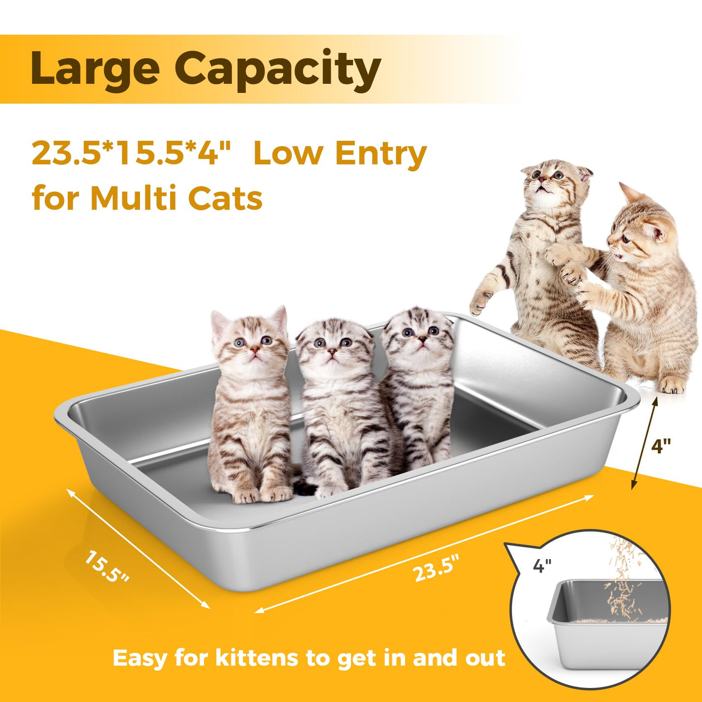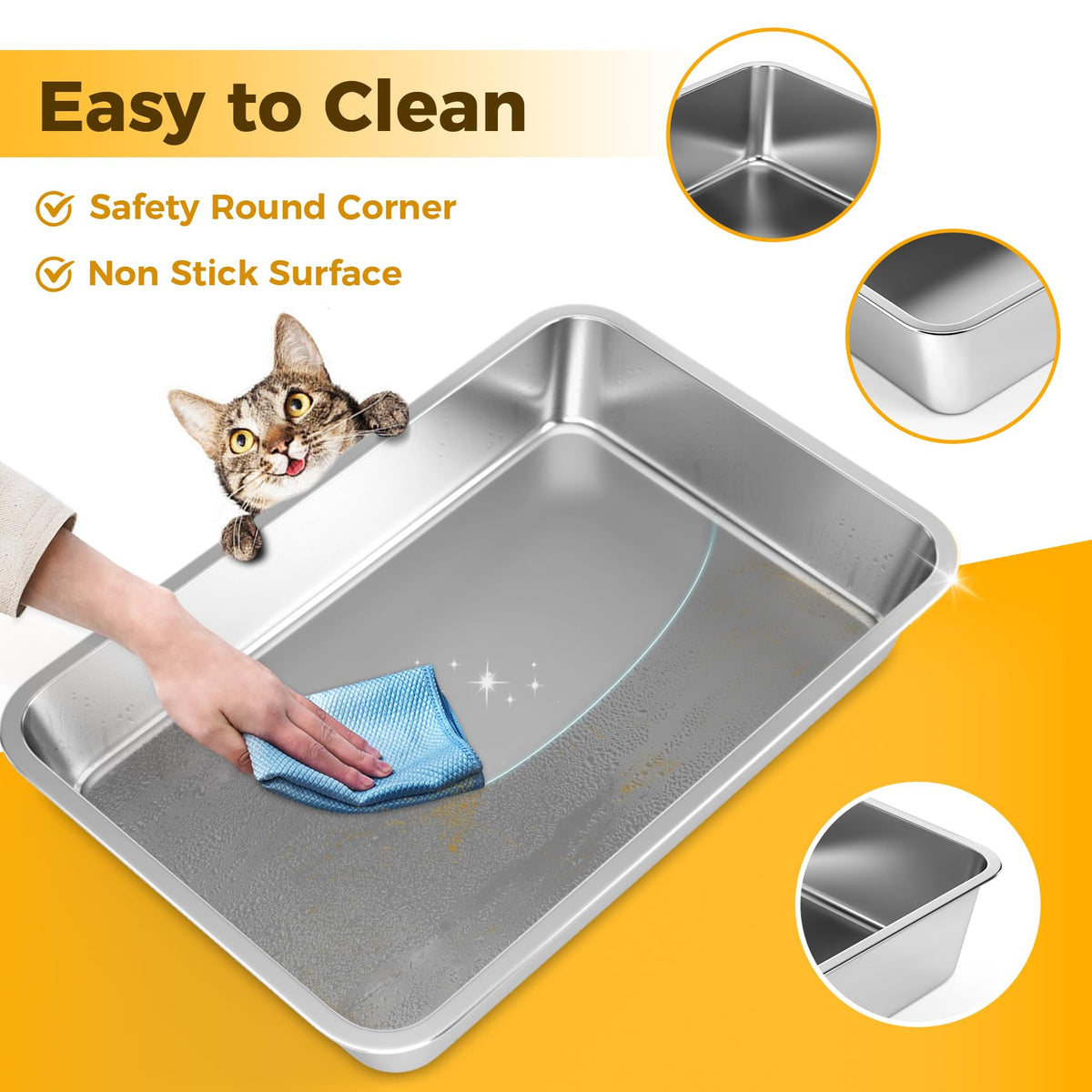 Lihong Stainless Steel Cat Litter Box,Large Metal Litter Box For Small Cats Hamster Rabbits,No Smell,Non Stick,Easy To Clean(24'