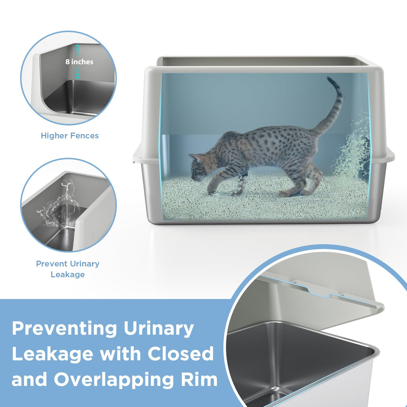 Lihong Stainless Steel Cat Litter Box, Xl Metal With Lid, Cat Litter Pan For Large Cats, Non-Sticky Large Kitty Litter Box, Anti