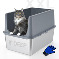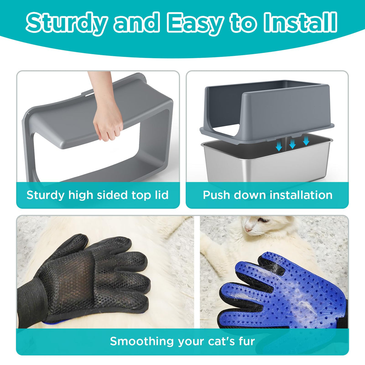 Lihong Stainless Steel Litter Box With Lid, Xl Metal Cat Litter Box For Indoor Cats, Enclosure Cat Litter Pan For Large Cats, No