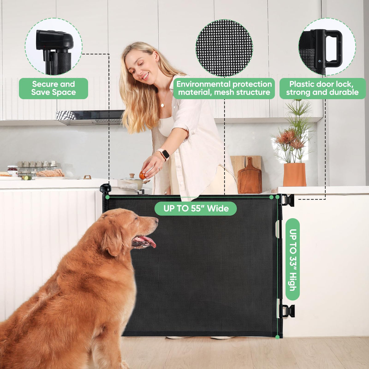 Likzest Retractable Baby Gate, Mesh Baby and Pet Gate 33'' Tall, Extends up to 55'' Wide, Child Safety Baby Gates for Stairs Doo