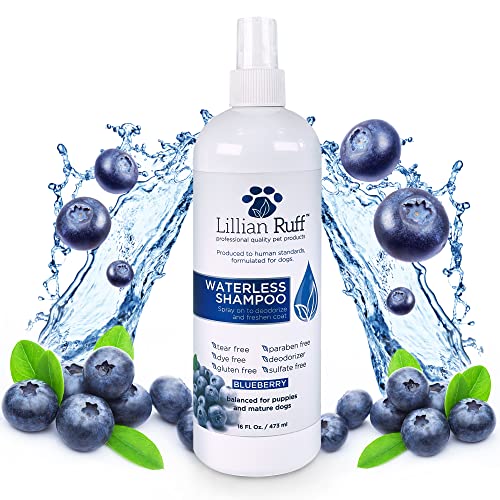 Lillian Ruff Waterless No-Rinse Dog Dry Shampoo Spray With Hydrating Essential Oils - Ph-Balanced Dry Shampoo For Dogs - Clean, Condition, Detangle & Deodorize Dry, Sensitive Skin (Blueberry)
