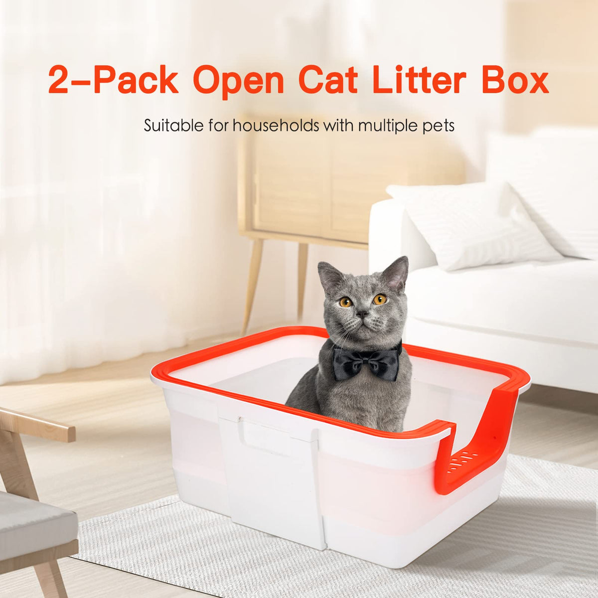 2-Pack Uncovered Litter Box: Low Entry Open Litter Box Benefits Young, Elderly Or Handicapped Cats. The Silicon Material Helps Stay The Way With No Worries Of It Popping Up. Another 1 Pack Can Also Be Used As A Cat Bed Or Bathtub, Or Just Put It In Another Room. Suitable For Households With Multi Pets.