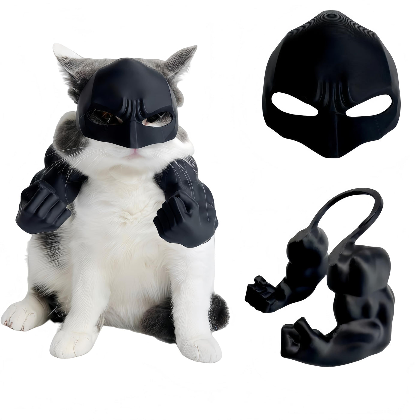 LINHUNCAT Cat Halloween Costume Accessories Set, 3D Printed Bat Mask and Muscle Arms, Role Play Props,Funny Cat Costume Accessor