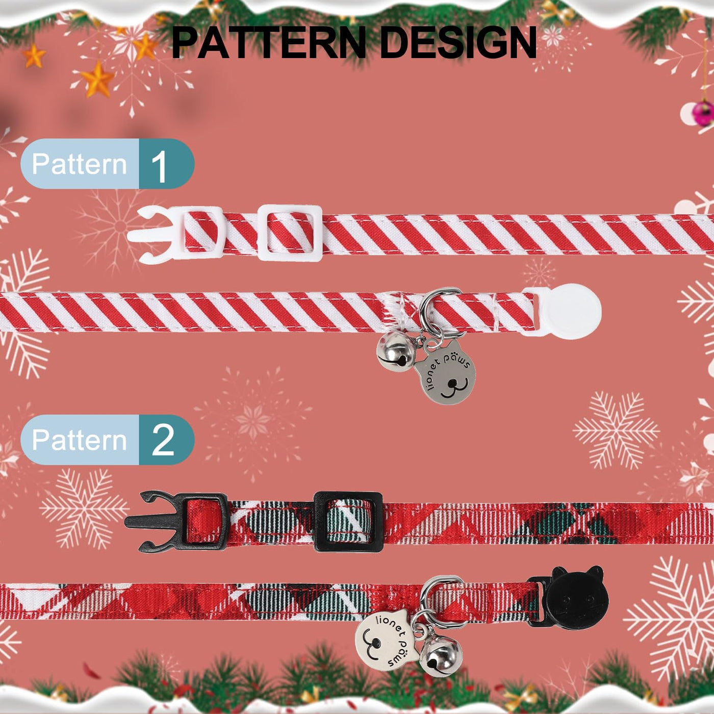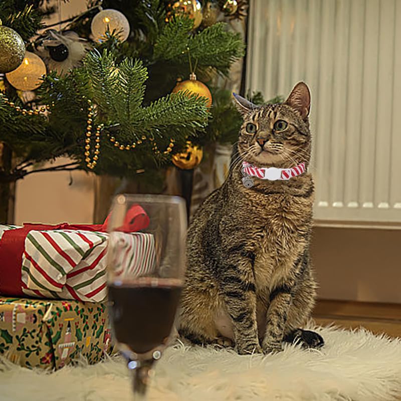 Lionet Paws 2Pcs Pack Cotton Cat Collar,Breakaway Buckle With Christmas Red Whtie Stripe Cute Adjustable Cat Kitten Collar,Ideal
