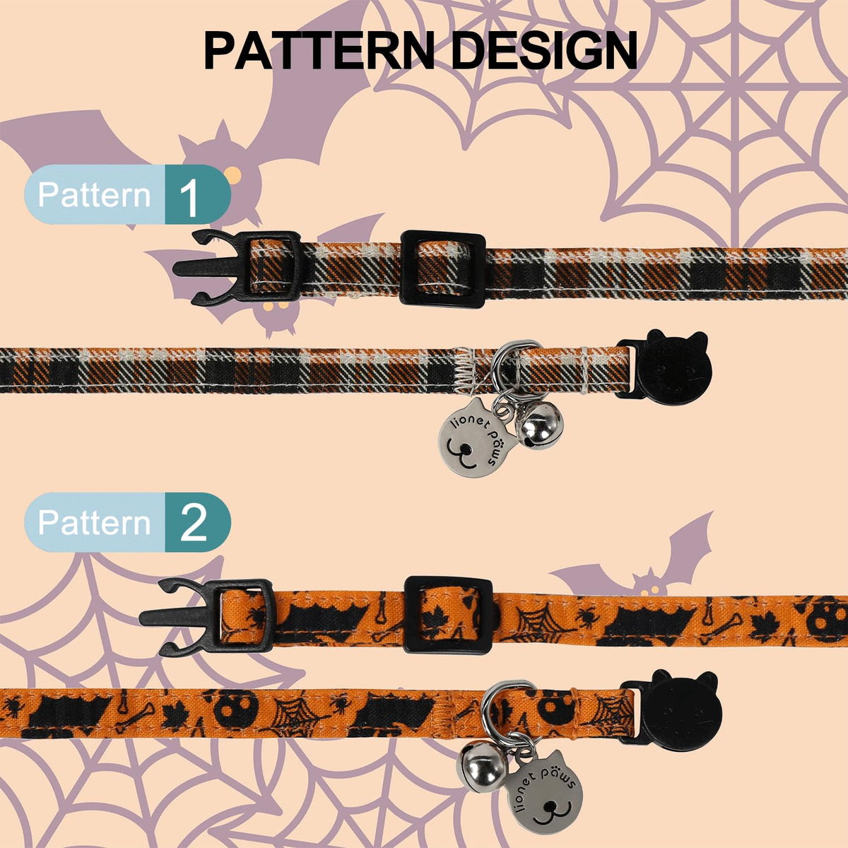 Lionet Paws 2Pcs Pack Cotton Cat Collar,Breakaway Buckle With Halloween And Brand Pendant Cute Adjustable Cat Kitten Collar,Idea