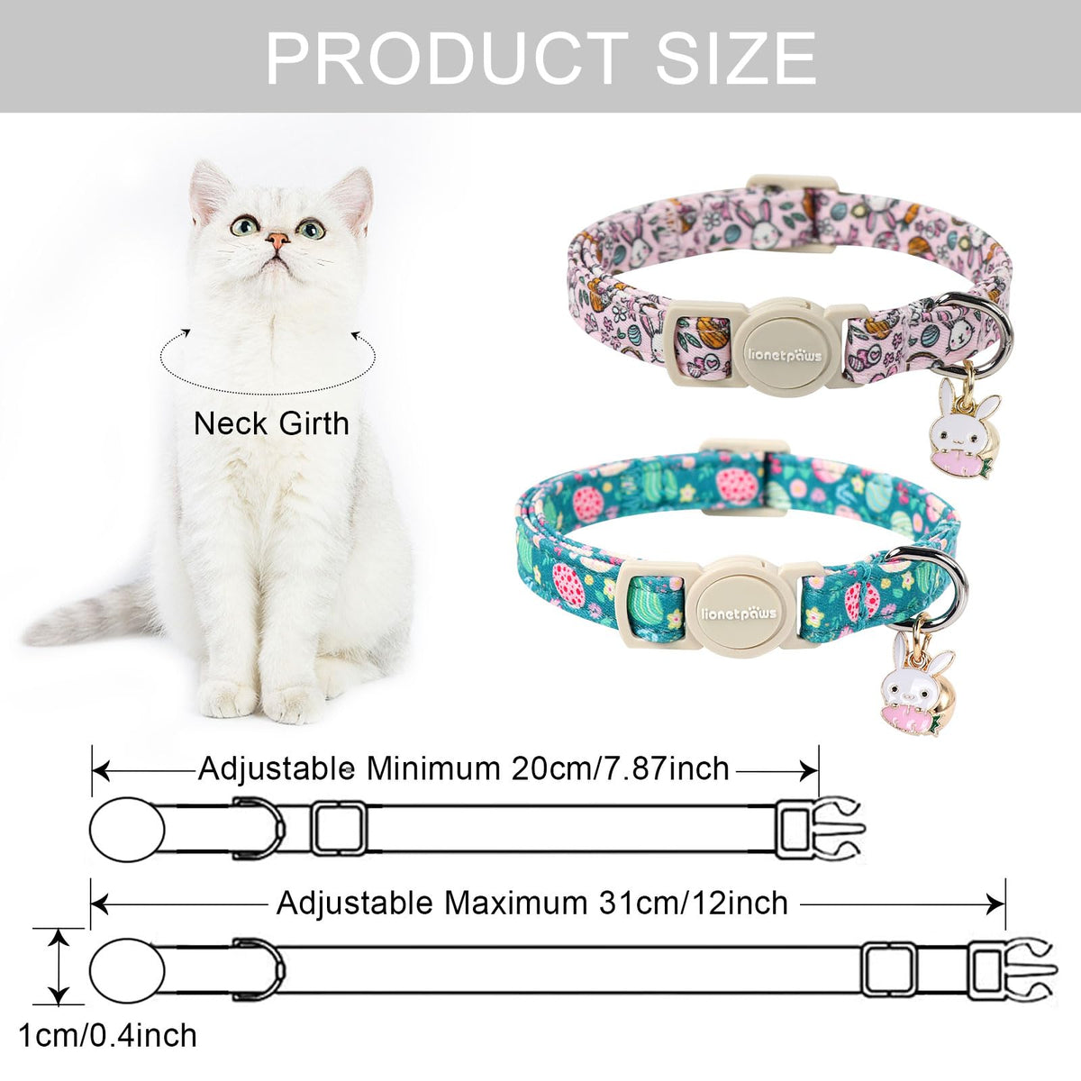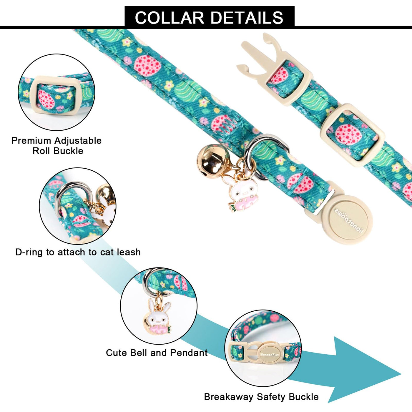Lionet Paws 2Pcs Pack Easter Cotton Cat Collar,Breakaway Buckle With Rabbit And Floral Eggs Cute Adjustable Green Cat Kitten Col