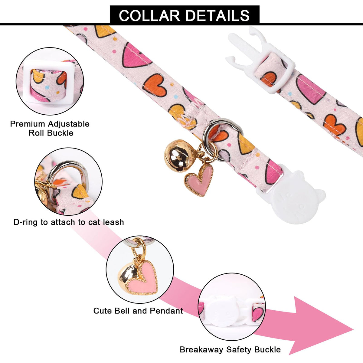 Lionet Paws 2Pcs Pack Valentine'S Day Cotton Cat Collar,Dot Heart Breakaway Buckle With Red Pink Love Cute Adjustable Cat Kitten