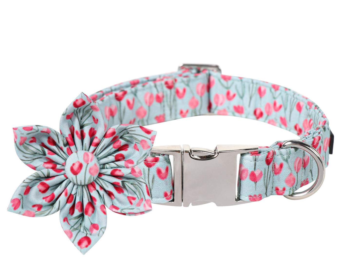Lionet Paws Design Dogs Collar Cute Adjustable Flower Dog Collars For Girl Female Medium Large Dogs With Tulips Xl