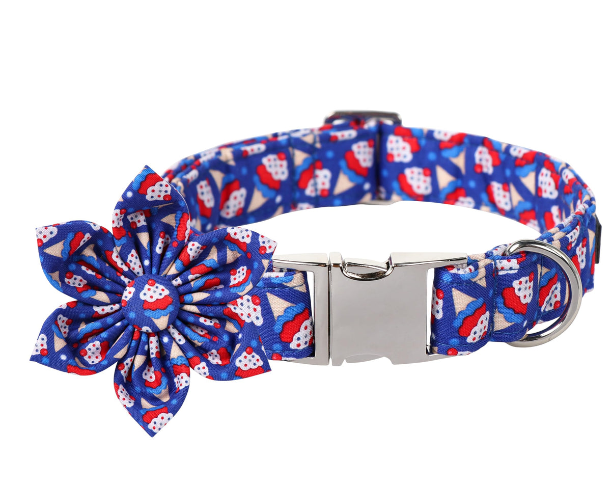 Lionet Paws Design Dogs Collar Cute Flower 4Th Of July Dog Collars For Girl Female Medium Large Dogs With Sundae Xl