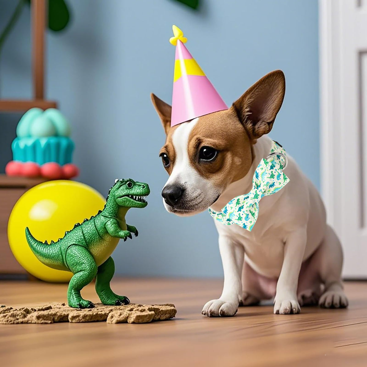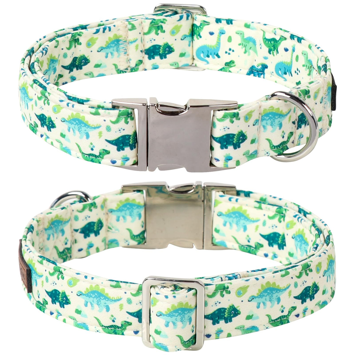 Lionet Paws Dinosaur Dog Collar With Bowtie, Cute Summer Beige Dog Collar For Girl For Medium Dogs, Adjustable Cotton Pet Collar