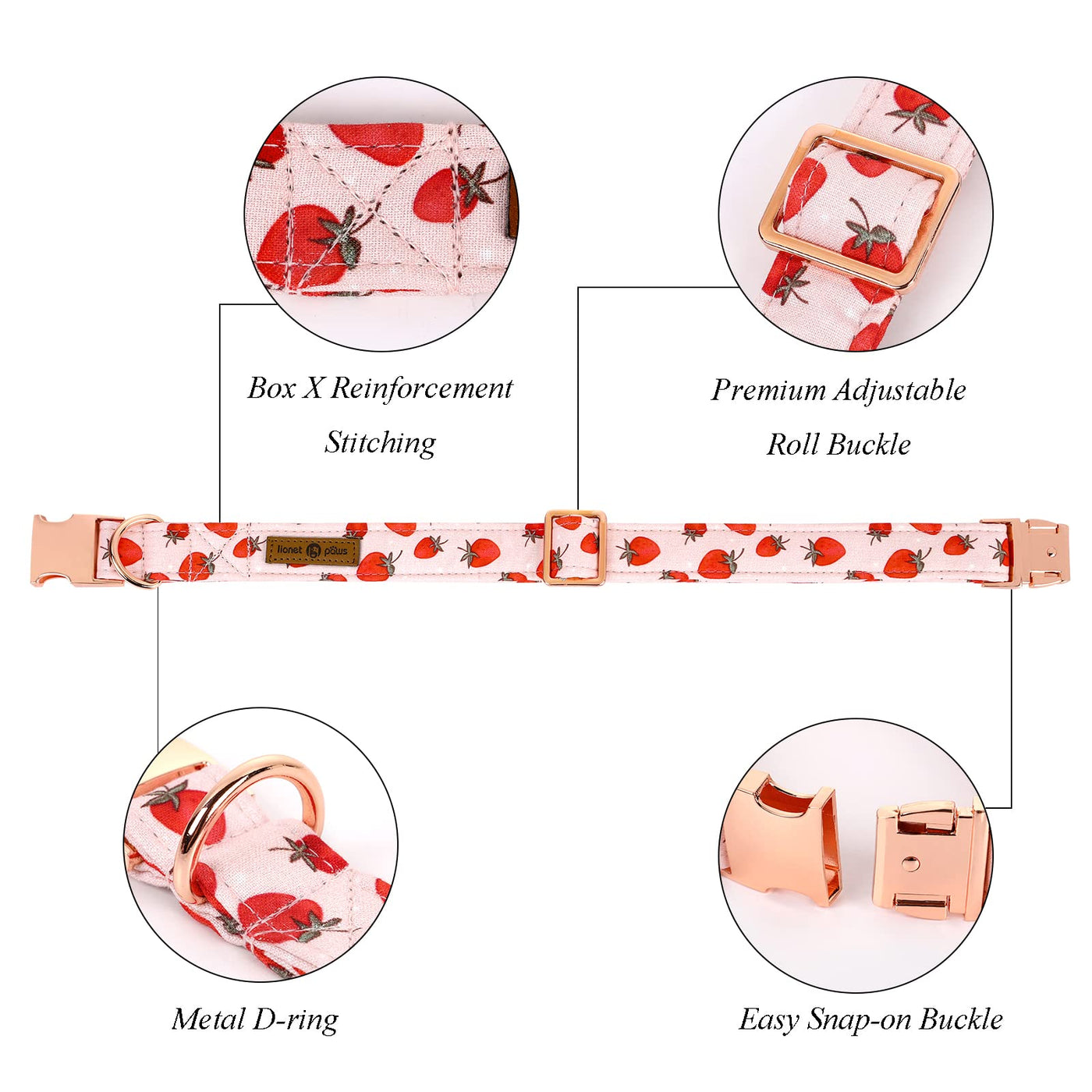 Lionet Paws Dog Collar, Comfortable Adjustable Cute Collar With Metal Buckle For Male Female Dogs, Strawberry Pattern, Large, Ne