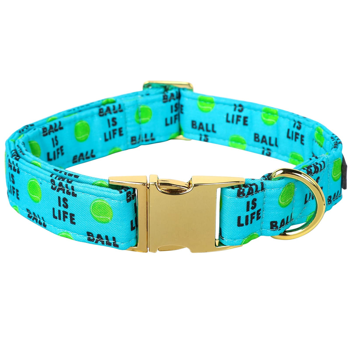 Lionet Paws Dog Collar, Comfortable Adjustable Cute Collar With Metal Buckle For Male Female Dogs, Tennis Ball Pattern, Large, N