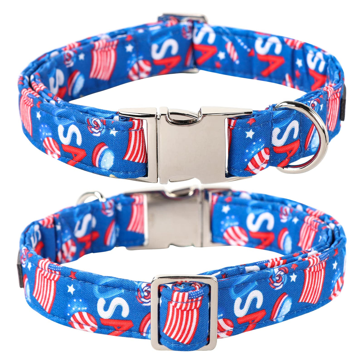 Lionet Paws Dog Collar, Comfortable Cute American Collar With Metal Buckle For Male Female Dogs, July Of 4Th, Large, Neck 16-24