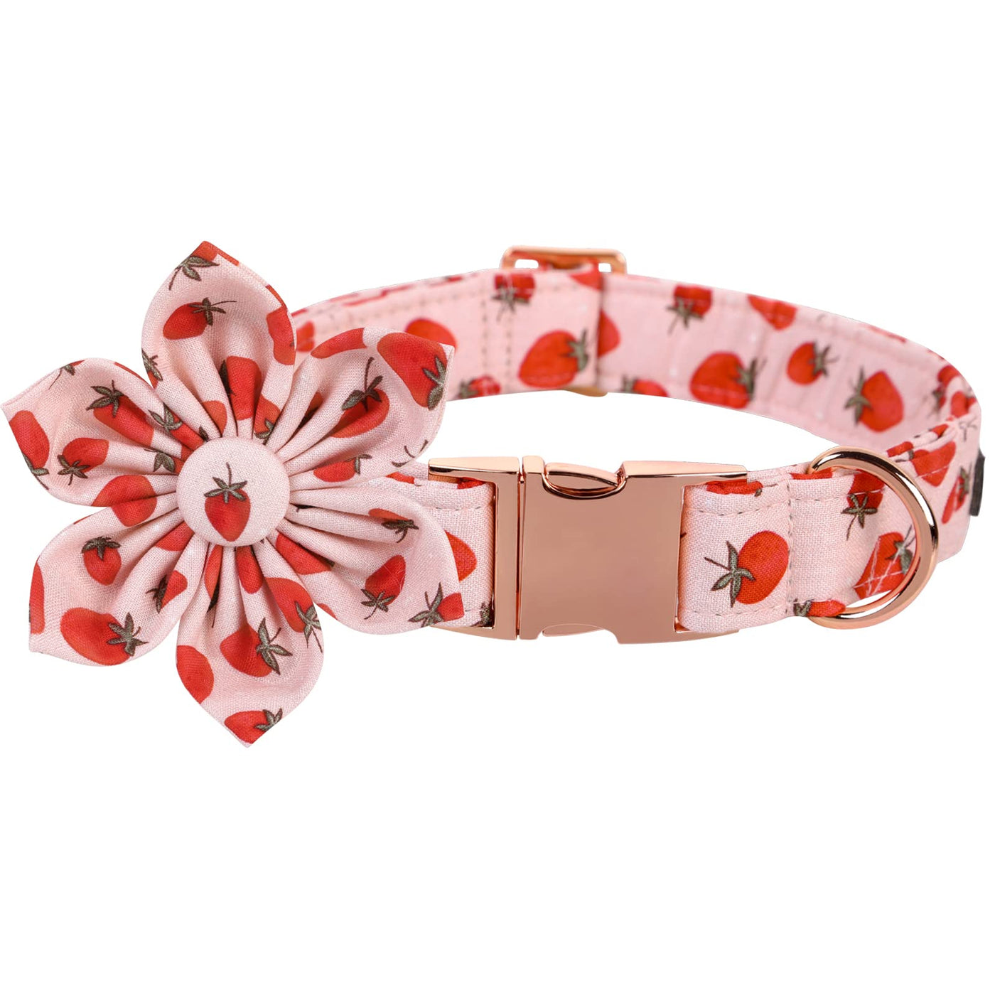 Lionet Paws Dog Collar With Flower - Cute Cotton Adjustable Flower Dog Cat Collar With Metal Buckle For Puppy Girl Boy, Xs, Neck