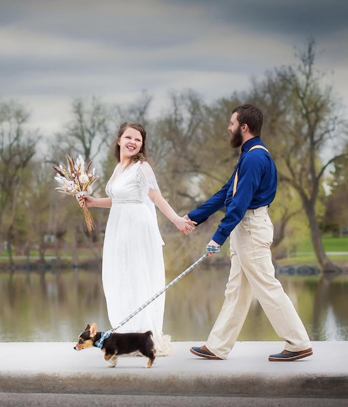Our leashes are different from ordinary leashes. We use 100% cotton soft and comfortable fabrics which will not hurt the skin of pets hair or human hands. The styles of our leashes are unique. This grid series of leashes are suitable for walks daily wears picnics parties weddings and other many occasions.