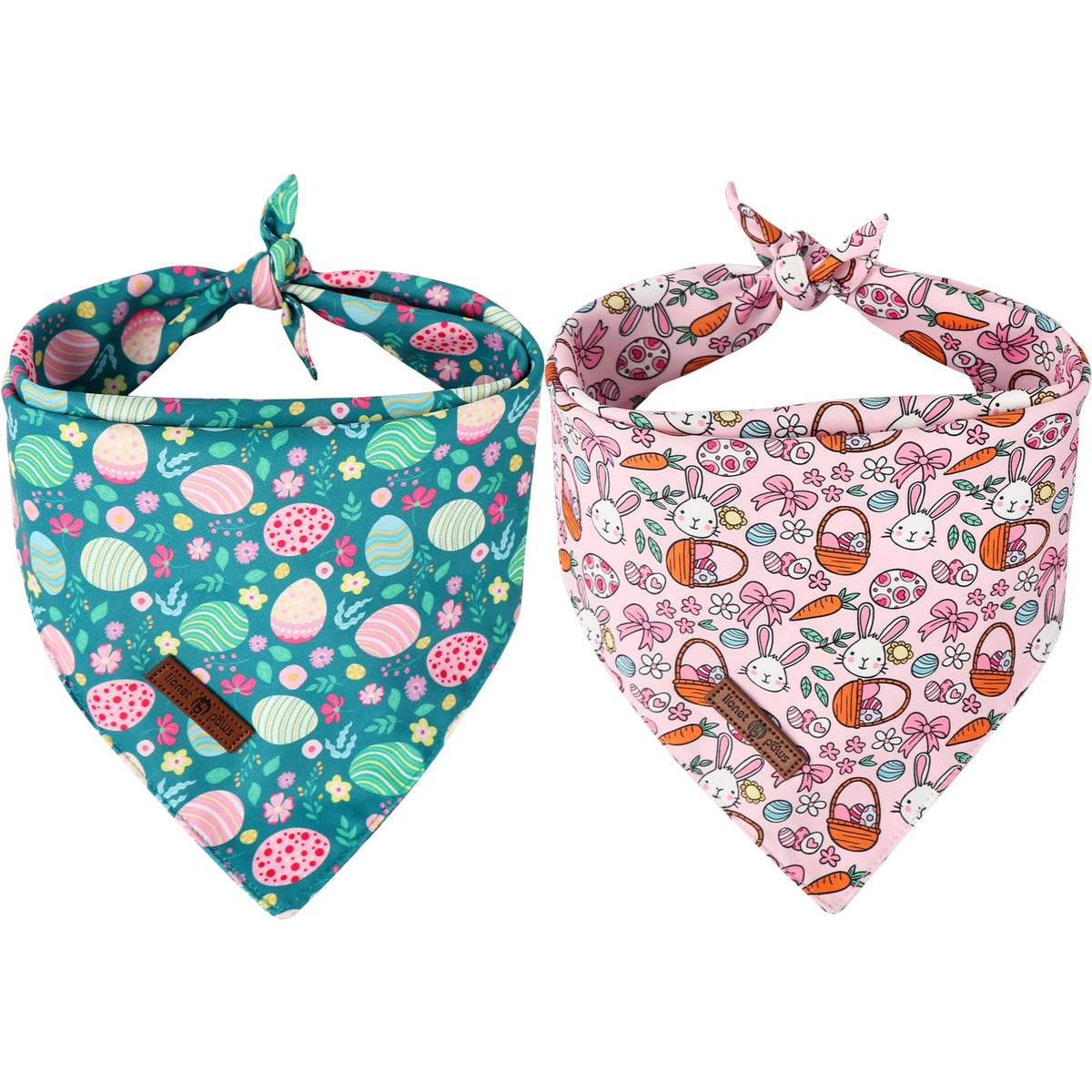 Lionet Paws Easter 2Pcs Dog Bandanas, Pink Cute Rabbit Egss Dog Scarf Bib Premium Fabric, Happy Easter Green Bandanas For Medium
