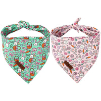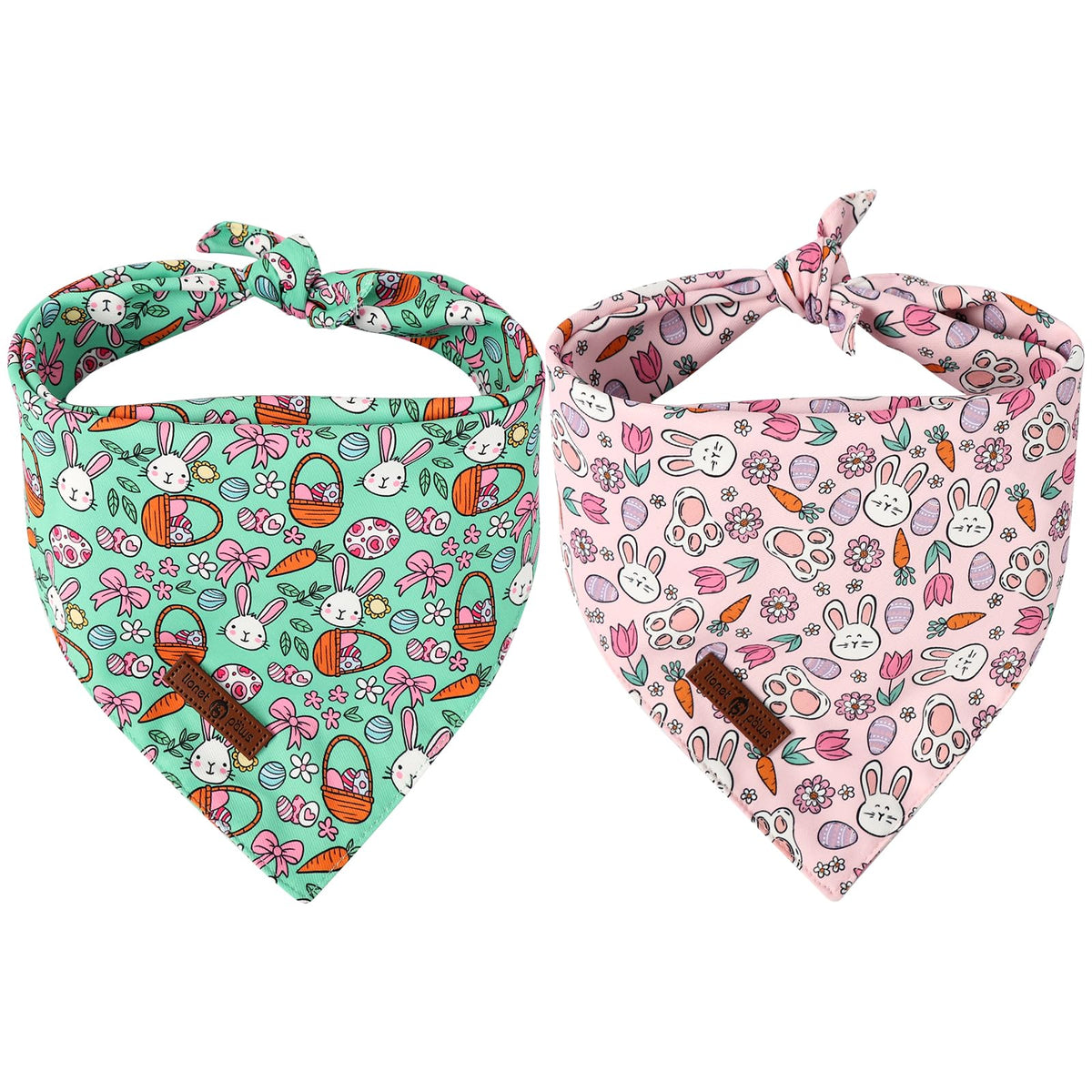 Lionet Paws Easter 2Pcs Dog Bandanas, Pink Rabbit Dog Scarf Bib Premium Fabric,Cute Rabbit Claw Flower Bandanas For Small Medium