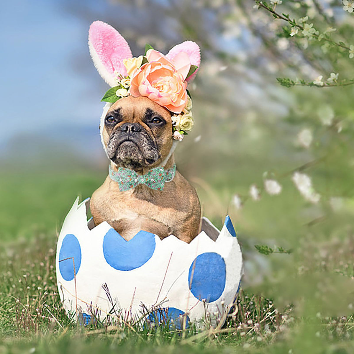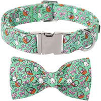Lionet Paws Easter Dog Collar,Green Eggs Dog Collar For Large Dogs Bowtie, Adjustable Cotton Rabbit Bowtie Pet Collars For Large