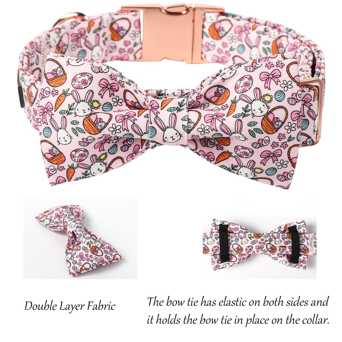 Lionet Paws Easter Dog Collar, Pink Rabbit Dog Collar For Medium Dogs With Bowtie, Adjustable Cotton Eggs Bowtie Pet Collars For