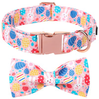 Lionet Paws Easter Dog Collar With Bowtie, Pink Dog Bowtie Collar With Metal Buckle,Rabbit Colorful Egg Bow Tie For Dogs, Xl, Ne