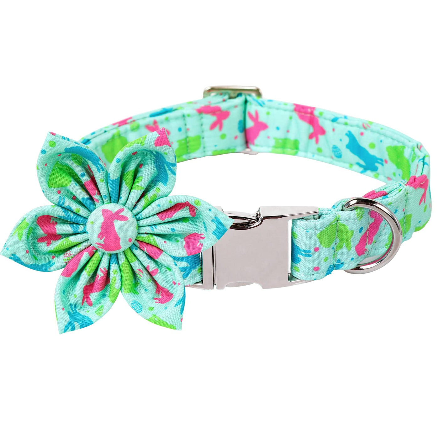 Lionet Paws Easter Dog Collar With Flower, Bunny Egg Flower Collar With Metal Buckle For Dogs And Cats, Adjustable Comfortable D