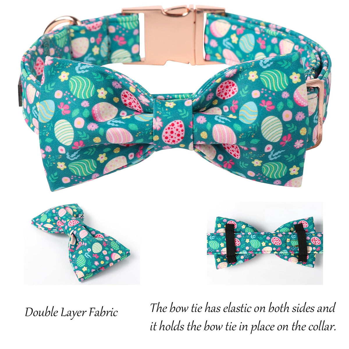 Lionet Paws Easter Green Dog Collar,Eggs Dog Collar For Medium Dogs, Adjustable Cotton Flower Pet Collars For Small Medium Dogs