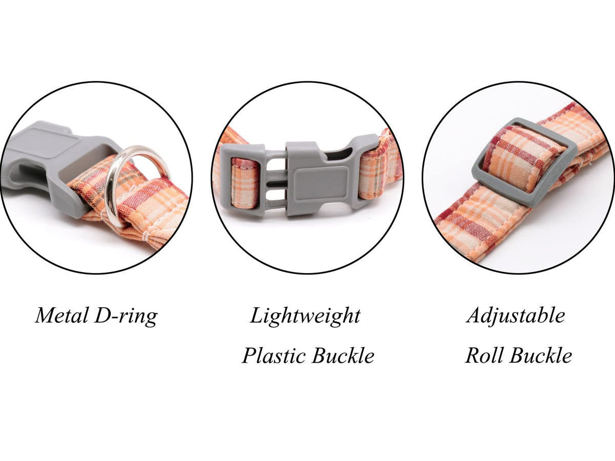 Q: What materials are used in the Lionet Paws Fall Dog Collar?A: The collar is made of 100% cotton fabric, which is thick and durable, along with a plastic buckle that is easy to put on and take off. The materials are designed to be gentle on your pet's skin.