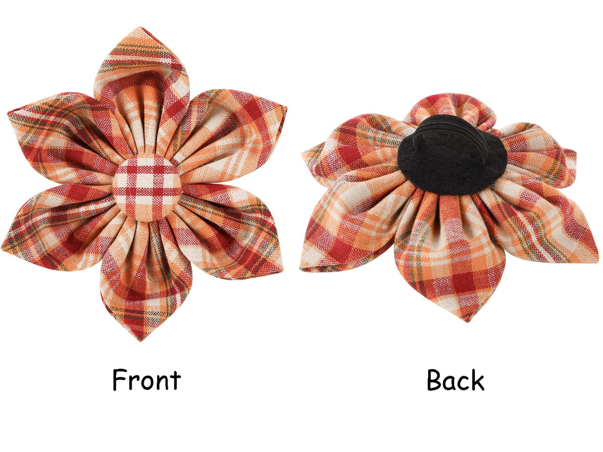 Lionet Paws Fall Dog Collar With Flower, Orange Dog Collar With Plastic Buckle For Medium Dog Girl Female Halloween Thanksgiving Day Gift, M, 13.5-22 In