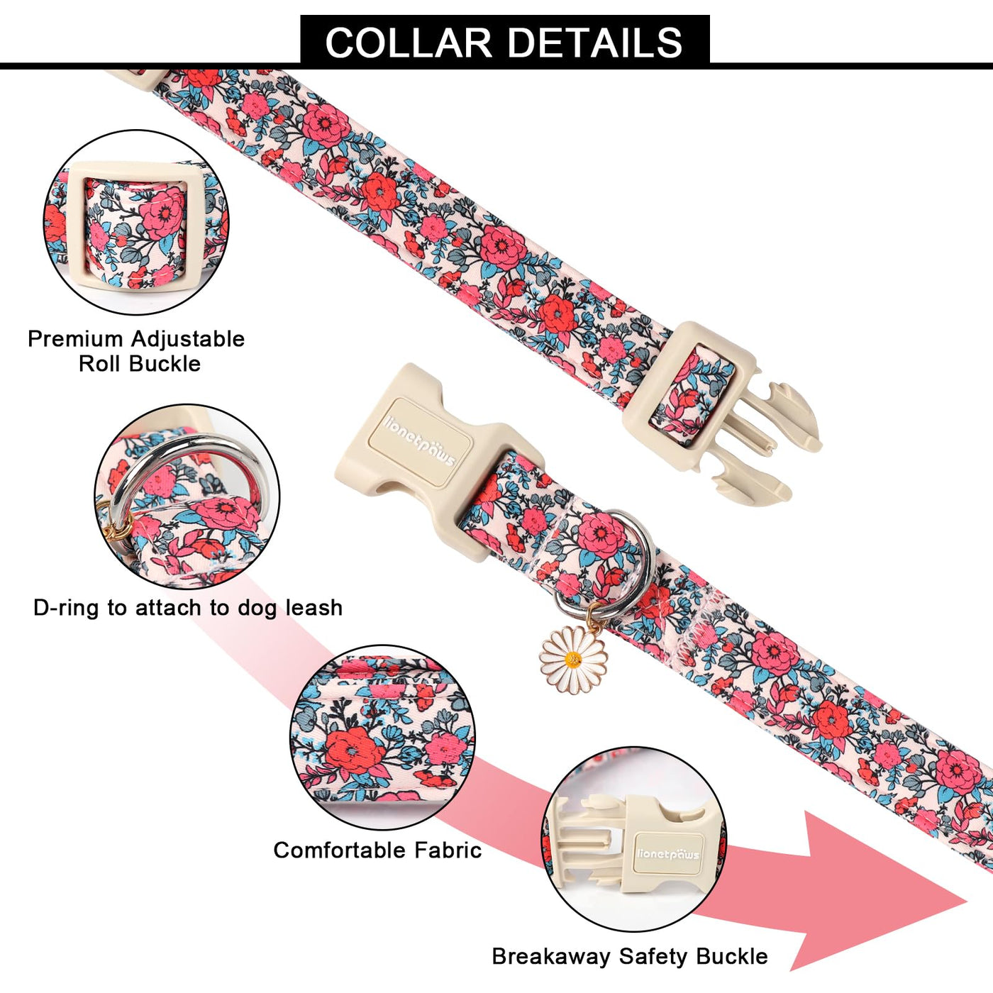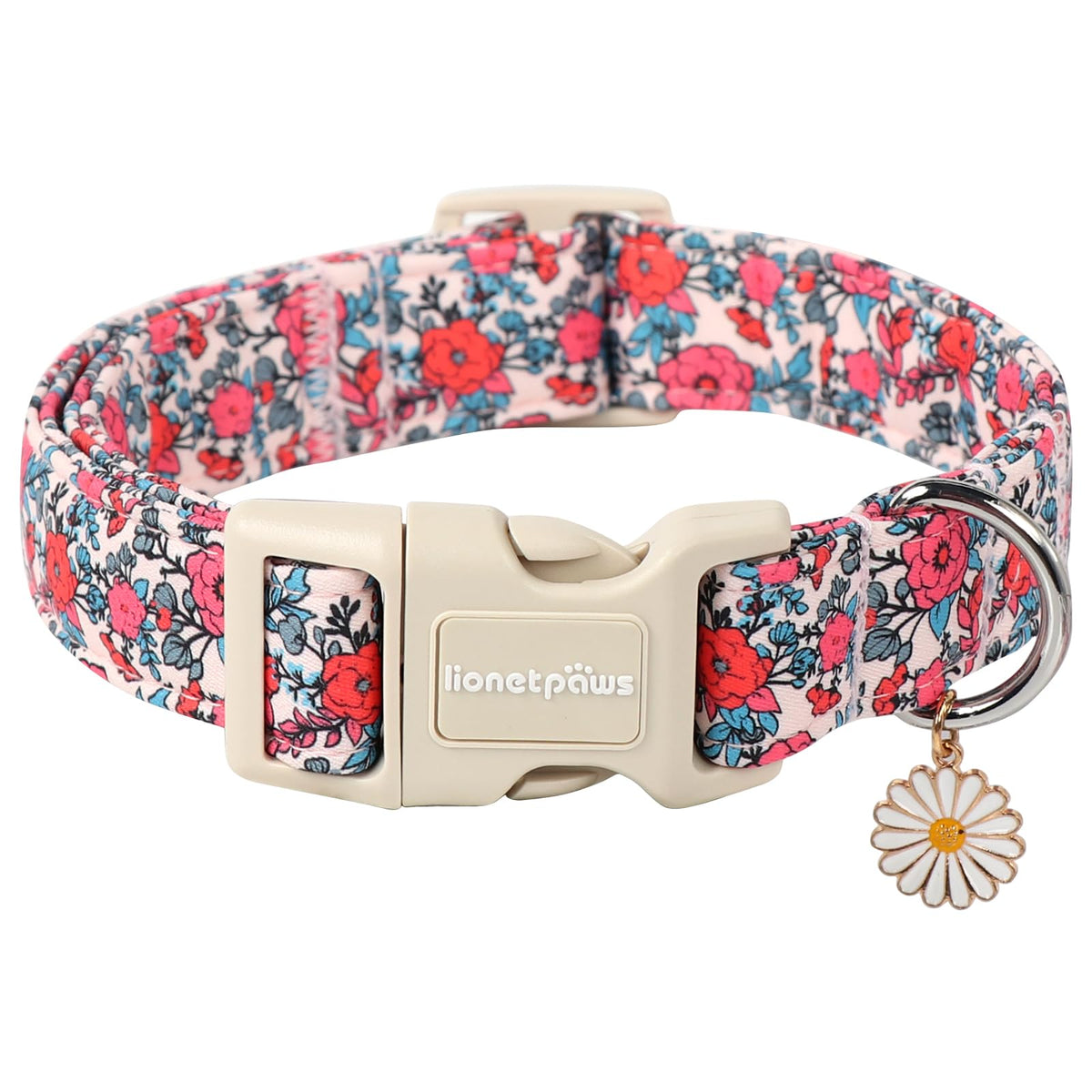 Lionet Paws Floral Dog Collar- Cute Red Pink Flower Dog Collars With Plastic Buckle, Light Adjustable Dog Collars For Small Dogs